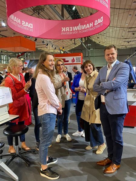 Die Landesinnung war vertreten durch das Ehrenamt und Mitarbeiterinnen der Innungs-Geschäftsstelle sowie tatkräftige Unterstützung durch Kollegen und Meisterschüler der Fachakademie für Augenoptik und Optometrie in Hankensbüttel. Wir waren erstmals Mit-Aussteller auf dem Gemeinschaftsstand des Handwerks. Zwischen den verschiedenen Bauberufen war die Anwesenheit des Augenoptiker-HANDWERKS erstmal sehr exotisch, trug jedoch dazu bei, dass vielen Anwesenden klar (gemacht) wurde, dass es sich hierbei um ein Handwerk handelt!